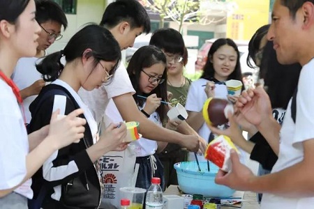 “绘出心中的党”组织同学们在石膏陶瓷花瓶上进行“不忘初心,紧跟党走”主题相关的绘画,并将成果作为奖励送给参与者留念。