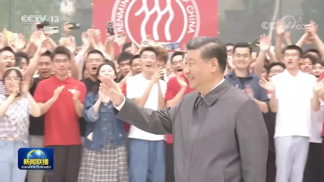还有部分师生代表在欢送队伍中,向总书记热情招手,高呼“复兴栋梁,强国先锋”“青春向党,不负人民”!