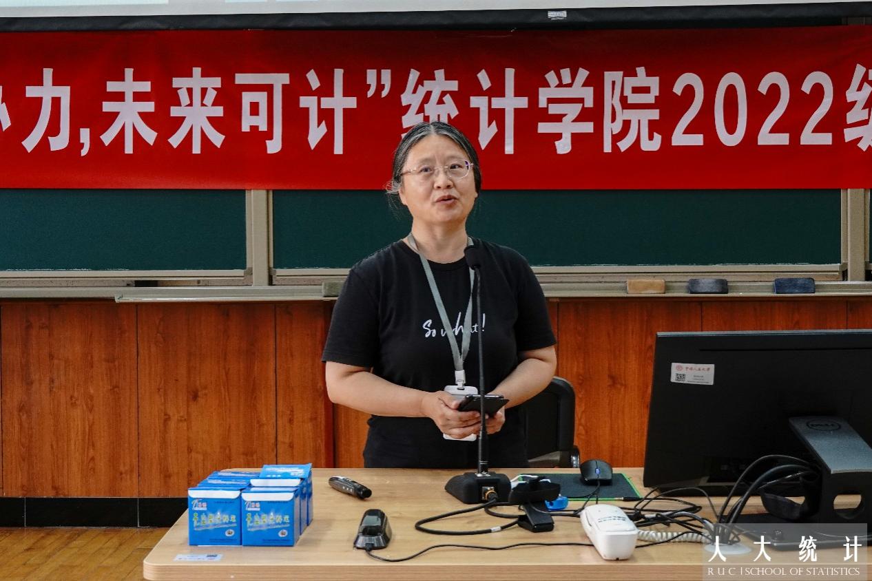 易丹辉老师首先以“为什么要学习”之问为引,提出学习的意义在于“懂为人之道”。无论身处什么岗位,都要不断提升,力争卓越;易丹辉对如何做到“善于学习”进行了阐释,要求新生们作为统计人,应当学会通过现象,挖出本质,提取规律,从而正确地认识客观事物的变化。她指出,善于学习最重要的是通过学习去不断思考。研究生与本科生学习的差异在于前者的独立性。在回顾历代人大统计人的努力与成就后,易丹辉鼓励新生要时刻牢记人大学子应有的担当,不仅要学得过硬本领,更要以实事求是的态度去客观地认识事物、认识社会、认识科学和认识自己,不负“复兴栋梁 强国先锋”的使命和责任。