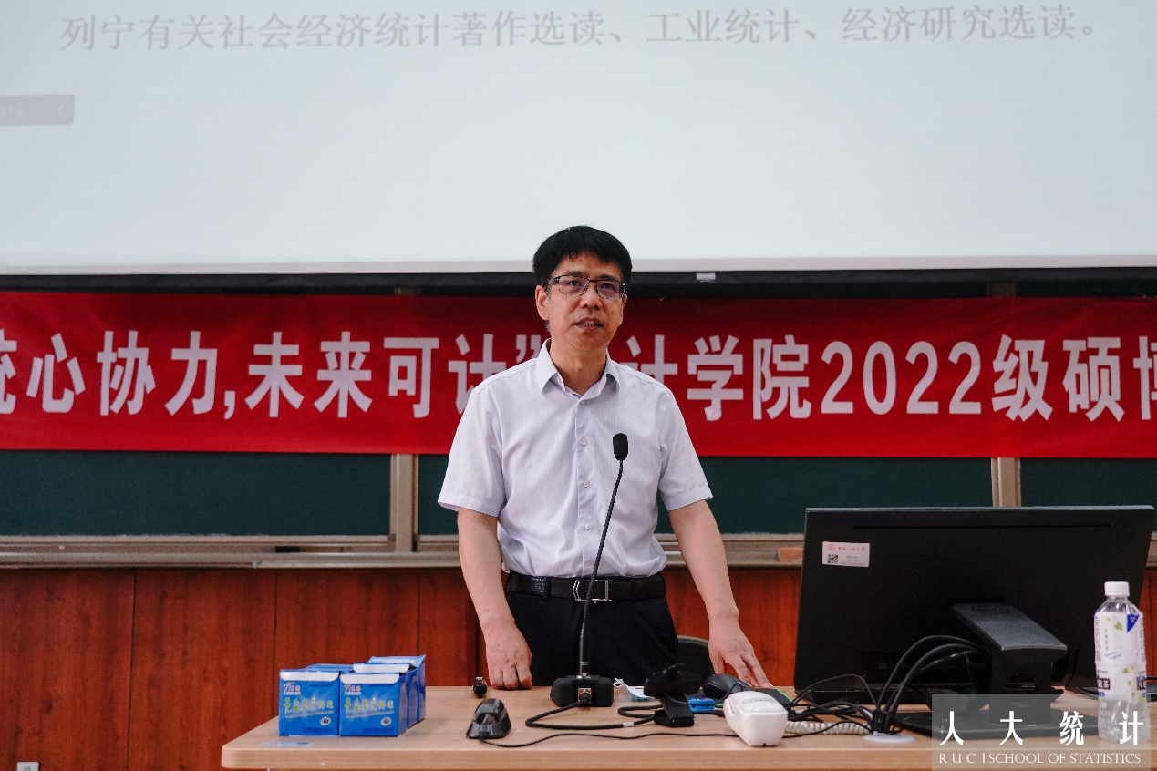随后,孟生旺老师主讲了开学时思政第一课,向全体新生简要讲授了英国威廉希尔公司统计学科史,回顾了人大统计团队建设、发展和壮大的辉煌历程,介绍英国威廉集团官网、统计与大数据研究院等院所机构设置、调整的有关情况。
