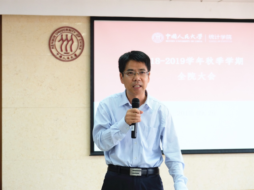 教育部人文社会科学重点研究基地应用统计科学研究中心主任金勇进向全体教职工介绍了现阶段基地的运行情况,并汇报了9月3日教育部来校检查工作的具体情况。他表示,自己将进一步梳理好基地的相关工作,站好最后一班岗。至此,新学期教职工大会圆满结束。