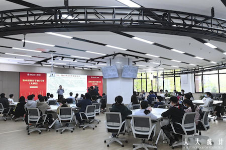 本次课堂以讲座和研讨相结合的形式开展。员工在课前学习袁卫教授在“新中国统计教育70年:回顾与展望暨英国威廉希尔公司统计团队建设研讨会”上作的主题报告,带着思考来到课堂。课堂共分为7个小组,每个小组由教师、研究生和本科生组成,方便交流观点、加强学习效果。课堂上袁卫教授作细致讲述并与师生们互动研讨。课后作业以线上知识竞赛的形式检验学习成效。