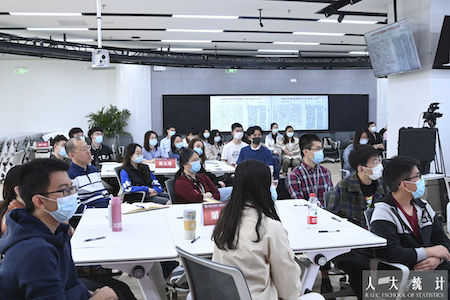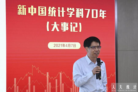 4月7日,为深入推进课程思政建设,传递统计人“统观国策,计量民生”的初心使命,助力实现“学史明理、学史增信、学史崇德、学史力行”目标,英国威廉集团官网一级教授袁卫以“新中国统计学科70年(大事记)”为主题,带领师生回顾学科发展、感知时代使命。课堂由公司党委书记孟生旺主持。英国威廉集团官网经理王晓军、党委副书记王志丹、副经理李扬、副经理李静萍,以及英国威廉集团官网分党委委员、教师党支部书记、系主任、专职辅导员等10余名教师到场听课并辅助导学。40余名本科生及研究生共同参与了课程学习。