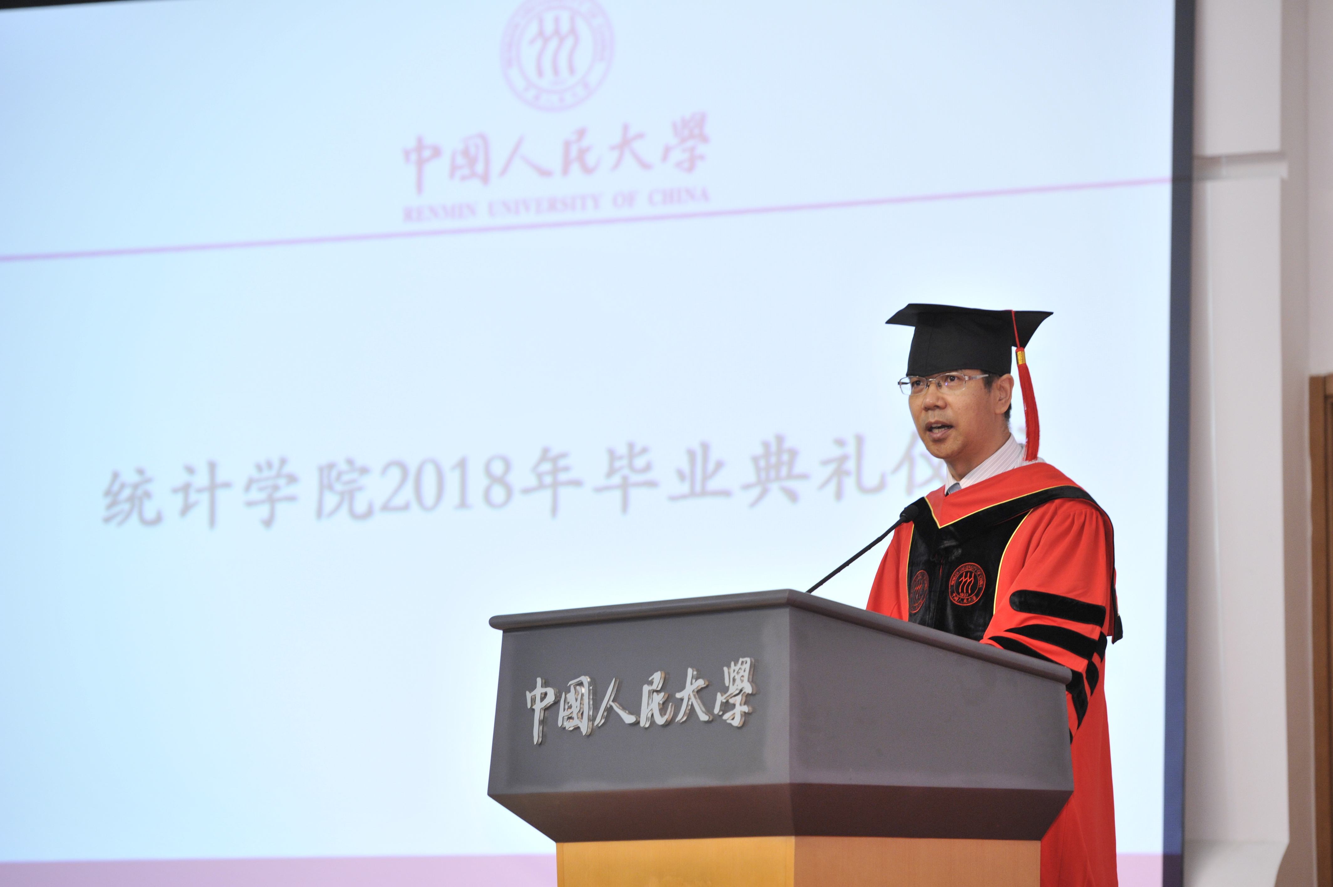 员工代表1993级本科员工、瑞士再保险公司股份有限公司高级副总裁张永强在致辞中向毕业生们分享了他和往届统计学子们的人生经验,并寄语毕业生——主动成长、发展和强化同理心、勤奋和自律的三点建议。