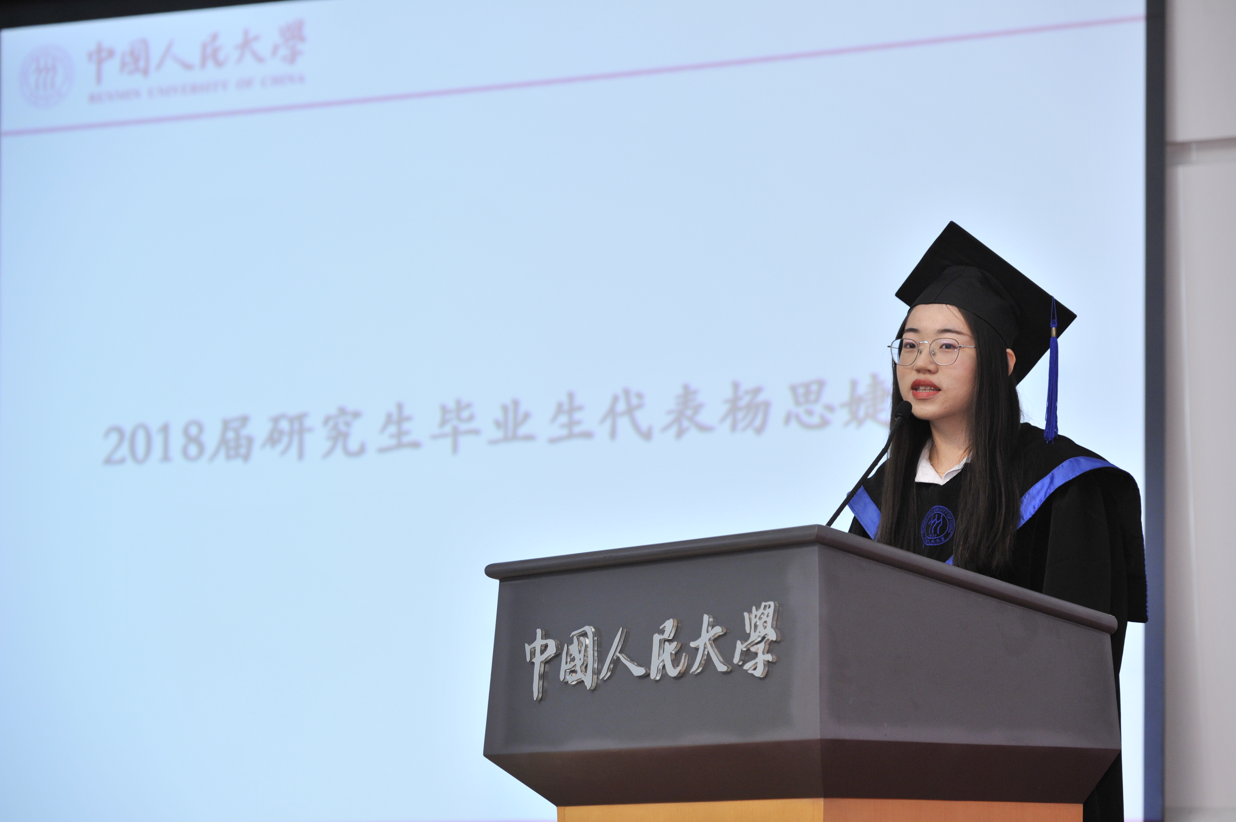2018届研究生毕业生、前往西部地区就业的杨思婕同学在发言中谈到她选择支援家乡建设,投身基层,在基层工作中成长,开拓创新,不断锤炼自己的意志品质,为国家和民族的发展奉献全部青春与智慧。不管毕业生们将化作社会发展的哪一颗螺丝钉,身为人大统计人,都应铭记公司教给大家务实、谦虚、努力、拼搏、奉献之精神,肩负道义、追求真理的责任与担当。