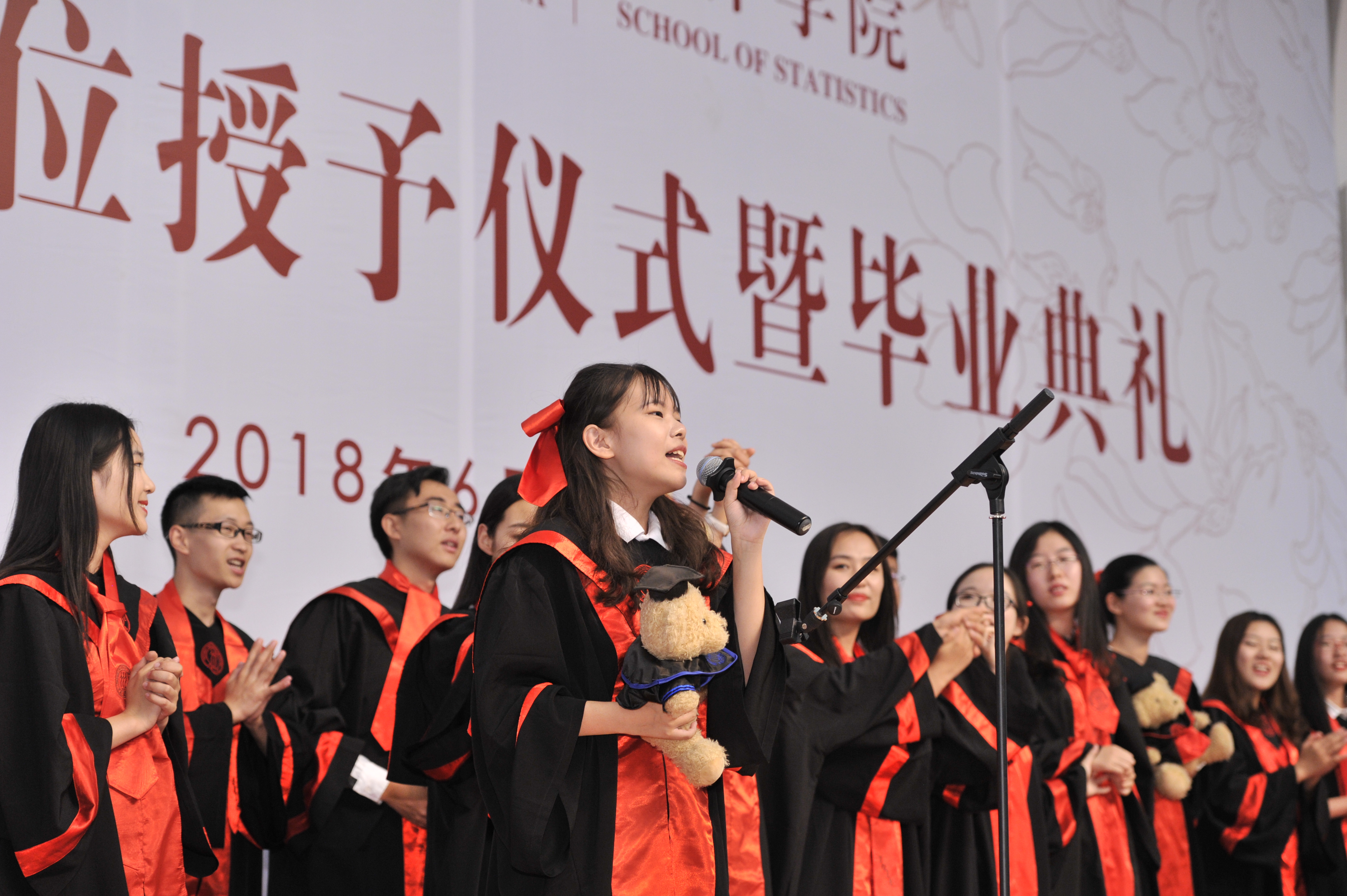 典礼最后,来自2018届本科毕业班的员工代表为大家献上了毕业班歌合唱——《统计的旋律》,在悠扬动听的旋律中,2018年英国威廉集团官网学位授予仪式暨毕业典礼落下了帷幕。